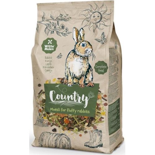 Společnost Witte Molen vyrábí krmiva již od roku 1740 a tato směs – WitteMolen Country pro (zakrslé) králíky – představuje v jejich portfoliu návrat ke klasickým krmivům. Jde o kvalitní, vyvážené krmivo s na vlákninu bohatými vojtěškovými (alfalfa) stébly a bylinkami. Kombinace těch nejlepších přírodních surovin sestavená na základě odborných znalostí o potřebách králíků zaručí vašemu drobnému mazlíkovi kvalitní stravu, na kterou se vy i on můžete spolehnout. Hlavní přednosti: