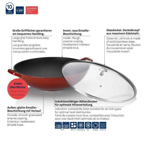 - materiál: litina- smaltovaný povrch- poklice s nerezovým úchytem- průměr: 36 cm- výška: 10 cm- objem: 2,5 L- barva: červená / černá- série: CALIDO- značka: KELA