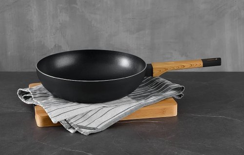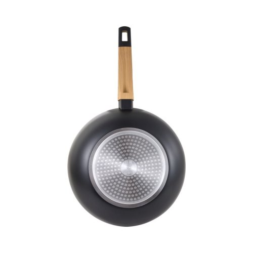 • Wok o průměru 28 cm • Lisovaná hliníková pánev, která se přizpůsobí úrovni uživatele. • Odolná nepřilnavá pánev, která nabízí optimální výkon. • Ergonomická tepelně odolná rukojeť. Technologie Soft Touch pomáhá kontrolovat teplo a zabraňuje popálení rukou. Silikonová rukojeť zajišťuje dobrý úchop a lepší ovládání pánve.•Vhodné do všech kuchyní. Tuto elegantní pánev lze použít s dalším nádobím ze stejné řady a přizpůsobí se každému stylu kuchyně.Wok 28 cm z kolekce Bergner´s Earth Black je vyroben z lisovaného hliníku, který rychle rozvádí teplo, a prémiový nepřilnavý povlak ILAG je velmi odolný díky dobré odolnosti proti poškrábání a oděru, vhodný pro každodenní použití. Vzhledem ke složení materiálu je při vaření v tomto woku bez PFOA, olova a kadmia, ideální pro zdravé vaření, nutné použít pouze malé množství tuku. Ergonomická měkká na dotek, tepelně odolná dřevěná rukojeť, která zabraňuje požáru. Základna s indukčním bodem je vhodná pro všechny sporáky jako je indukční, plynový, sklokeramický, halogenový a elektrický. Ideální pro míchání přísad pro vaření v páře, restování, vaření a rovnoměrné potahování a smažení, aniž by se potraviny přilepily na povrch, což umožňuje snadné čištění. Pro prodloužení životnosti produktu se doporučuje ruční čištění.