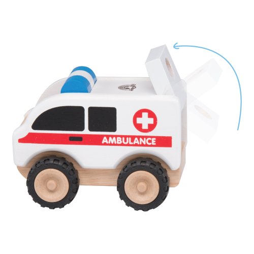 Stala se nehoda, volejte sanitku! Tato mini sanitka v unikátním designu i s řidičem je perfektní pro malé ruce. Zadní dveře jsou výklopné nahoru. Při hře si děti rozvíjejí představivost, trénují koordinaci ruka-oko a soustředění. Hlavní vlastnosti: zadní nahoru výklopné dveřerozvíjí fantazii, koordinaci ruka-oko a soustředění