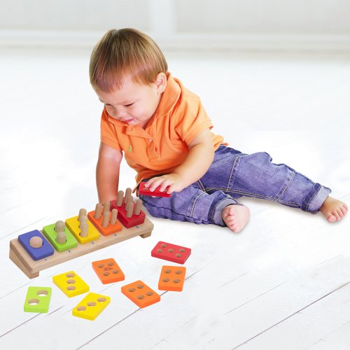 S přispěním výrazných barev pomůže tato jednoduchá skládačka dětem přirozeně pochopit význam čísel a naučit se základnímu počítání. Nasazováním destiček děti mohou navíc rozvíjet i jemnou motoriku. Hračka je robustní, vyrobená z odolného masivního dřeva. Hlavní vlastnosti:základna a 15 dílků skládačkyodolné provedení z masivního dřevavytříbená barevnost a povrchová úprava