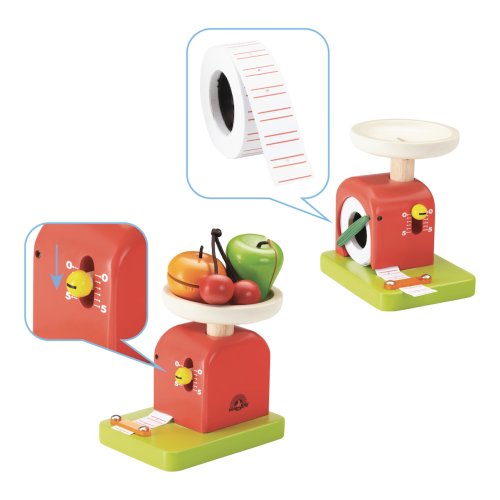 Váha je vybavena pohyblivým měřidlem a k zapisování výsledků vážení slouží vyměnitelná páska (náhradní páska není součástí balení). Vašim dětem takto může hračka pomoci chápat význam hmotnosti a zlepšit početní dovednosti. Je vyrobena z odolného masivního dřeva lakovaného atraktivními pestrými barvami. Hlavní vlastnosti:pohyblivé měřidlovyměnitelná páskaodolné provedení z masivního dřeva