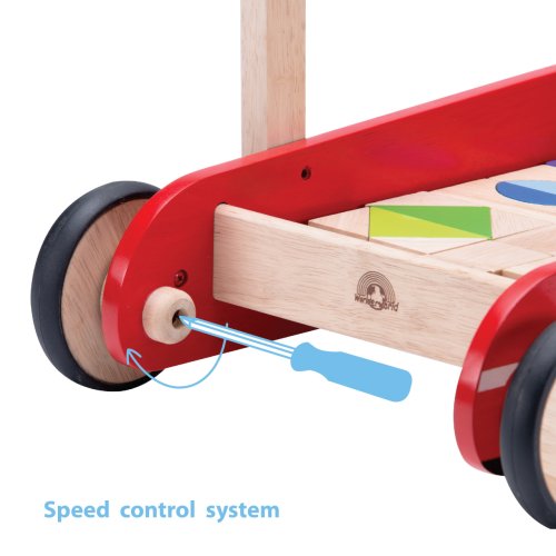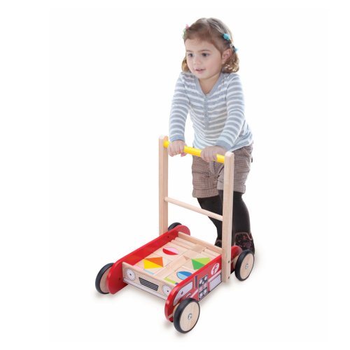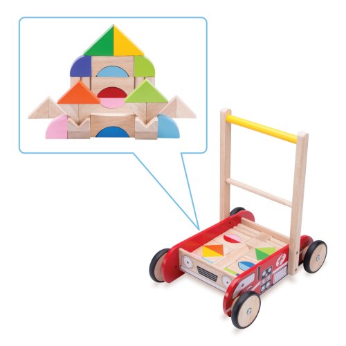 Chodítko v podobě hasičského vozu obsahuje sadu kostek převážně v barvě přírodního dřeva, přepravovat jím ale samozřejmě lze i jiné hračky. Snaha do něj kostky správně urovnat hru obohatí o zkoušku důvtipu. Je vybaveno praktickou brzdou, kterou můžete nastavit rychlost a oporu dítěti učícímu se chodit. Když už děti zvládají chůzi dobře, můžete kola odbrzdit, aby se dítě mohlo pohybovat svou rychlostí. Kola jsou opatřena gumovými návleky, které zaručují tichý chod na všech druzích povrchů. Chodítko se vyznačuje robustní, odolnou konstrukcí využívající překližku a masivní dřevo. Hlavní vlastnosti:chodítko, 12 různobarevných a 20 přírodních kostekbrzda pro oporu a cvičení chůzetichý chodrobustní dřevěné provedení
