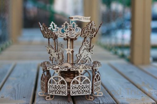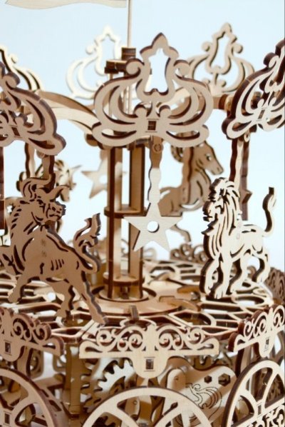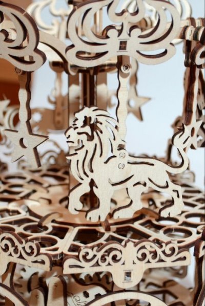 Stavebnice klasického kolotoče z překližky. Skládačka je dodávána v nesloženém stavu, balena v krabici. Vybaveno detailním návodem k sestavení. Hlavní vlastnosti:197 precizně vyřezaných dílkůstřední obtížnost sestavení