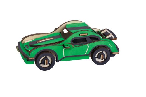 Tato série dřevěných hraček 3D puzzlí je určena především pro pány chlapce a jejich tatínky, kteří se rádi se svými dětmi vracejí do svého dětství. Jedná se spíše o jednodušší až středně těžké 3D puzzle dopravních prostředků a různých strojů od historických aut, motorek, moderních sporťáků přes bojovou techniku, stavební stroje až po lokomotivy – to vše z krásného dřeva, ať už přírodního nebo barevného. U většiny sestavených modelů lze otáčet koly spíše symbolicky jen k dokreslení pohybu, nesnaží se předvést věrohodnou jízdu. To ovšem dětem nebrání, představit si za dřevěnou hračkou dokonalý dětský svět. Dřevěné 3D puzzle nejsou určeny pouze pro vystavení na polici, ale protože jsou jejich díly moudře spojeny, mohou být použity jako rovnocenné dřevěné hračky pro každodenní hraní. Jsou vyrobeny ze 3 nebo 5 mm silné kvalitní překližky a jsou dodávány v nesloženém tvaru, baleny ve fólii. Jednotlivé díly z dřevěné překližky jednoduše vymáčknete a podle přiloženého návodu skládáte krásné plnohodnotné dřevěné hračky. Dětem se tak rozvíjí jejich myšlení, jemná motorika a představivost. Dřevěné 3D Puzzle nemusíte lepit lepidlem, poté je lze kdykoli rozložit a znovu složit. Doporučujeme si ponechat návod na stavbu. Přírodní dřevěné 3D puzzle si mohou děti i samy vybarvit podle své fantazie. Barevné dřevěné 3D puzzle jsou opatřeny kvalitním potiskem. Jsou určeny dětem od 3 let a splňují všechny normy EU. Upozornění: Není vhodné pro děti do 3 let, protože obsahuje malé součásti – hrozí nebezpečí udušení. Balící materiál není hračka. Hlavní vlastnosti: přírodní dřevěné 3D puzzlerozvíjí jemnou motoriku a představivostvhodné od 8 letjednoduchá obtížnost