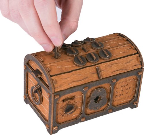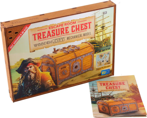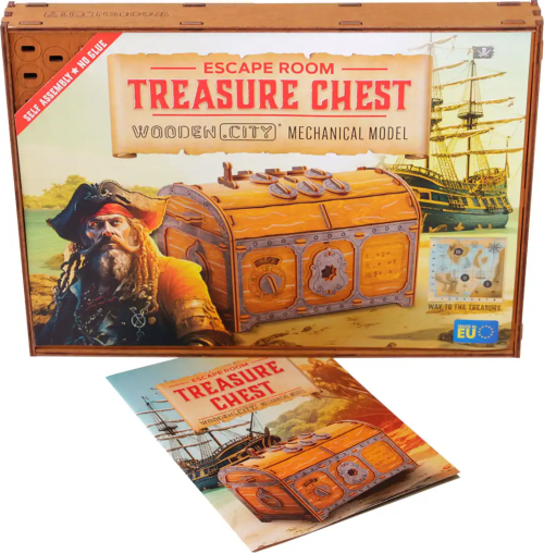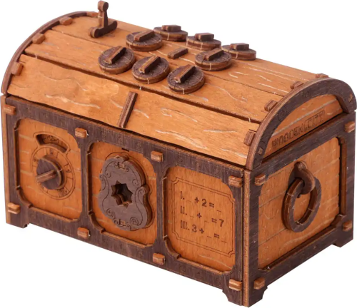 3D Puzzle ze série Escape Room - Truhla s pokladem láká už na první pohled. Je kombinací složitého designu a mechanického zázraku. Představte si truhlu, která je tak pečlivě vyrobená, že každá západka a každý pant se stávají součástí rozvíjejícího se příběhu. Po sestavení vás čeká napínavá cesta luštění, abyste odhalili její tajemství. Pokud hledáte dárek, který překračuje hranice všednosti, je to právě tento. Ať už je to pro milovníka historie, nadšence do hlavolamů nebo někoho, kdo oceňuje jemné umělecké zpracování, truhla s pokladem vás jistě uchvátí. Není to jen dárek, je to zážitek, který čeká na své rozvinutí.
