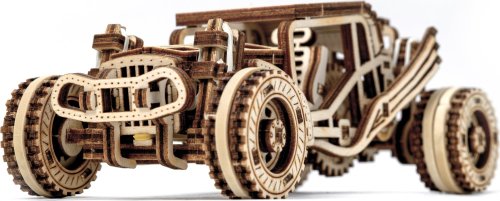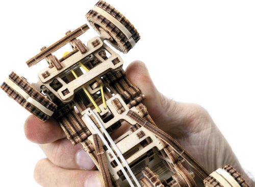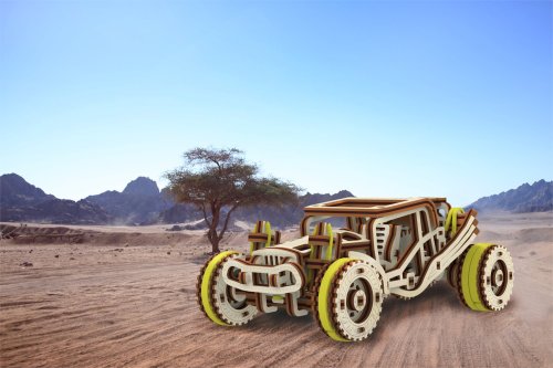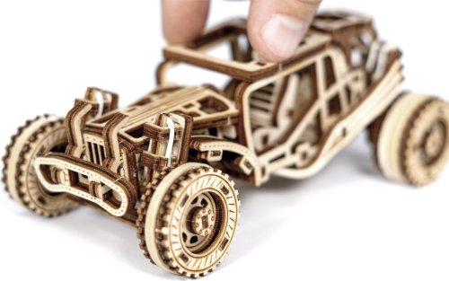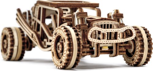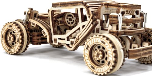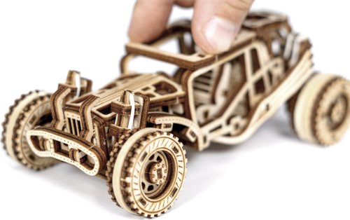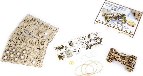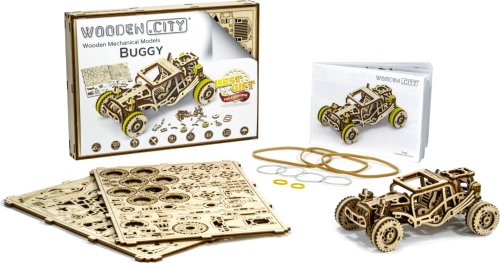 Sportovní vozy si podmanily srdce milovníků automobilů již v minulém století. Až uvidíte tento dřevěný miniaturní model v pohybu, řeknete si ''WOW''. Bugina má nezávislé zavěšení kol, setrvačníkový mechanismus a vratná kola. Speciální pogumovaná kola a úžasná křídla vypadají přirozeně jako bezchybná kopie skutečné Buggy. Tento model v sobě spojuje dokonalý design a složité funkce. Model má několik detailů skutečného automobilu: - nezávislé zavěšení kol, - přední otočná kola, - setvačníkový mechanismus, - vratná pogumovaná kola. 3D puzzle WOODEN CITY Buggy je skvělým dárkem pro každého milovníka sportovních vozů. Obtížnost: 3 z 5 (dle rozdělení Wooden City) Orientační doba na složení: 2 hodiny Měřítko: 1:32 Dřevěné 3D puzzle WOODEN CITY jsou detailně propracované funkční mechanické modely, které se skládají bez lepidla nebo nářadí. Jsou vyrobeny z ekologických dřevěných materiálů - kvalitní březové překližky. S mechanickými dřevěnými puzzle WOODEN CITY zažijete hodiny zábavy při skládání a poznáte převody, gumičkové motory, ozubená kolečka a další součástky z bezprostřední blízkosti.