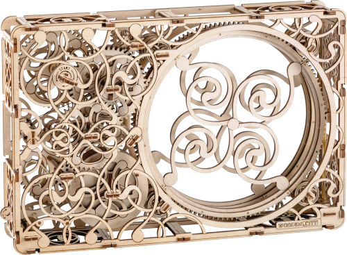Náš mechanický obrázek je dřevěné 3D puzzle, jeden z našich nejoblíbenějších laserem řezaných dřevěných modelů. Jedná se o živý obrázek, který se aktivuje klíčem. Uvidíte pohyb ozubených kol, které vytváření fascinující mechanický tanec. Všechny části vytvářejí logické vazby v souladu s matematickým výpočtem. Věda a umění splývají v jedno mistrovské dílo. 3D puzzle WOODEN CITY Mechanical Picture neobvyklým dárkem pro milovníky krásy a překvapení. - Spouští se speciálním klíčem, - fascinuje optickou iluzí, - otáčí se pomocí gumičkového motoru, - napětí gumičky je nastavitelné, - k dispozici je spouštěcí páčka, - speciální háček pro zavěšení obrázku na zeď, - doba provozu od jednoho spuštění je 1 minuta. Obtížnost: 3 z 5 (dle rozdělení Wooden City) Orientační doba na složení: 5 hodin Dřevěné 3D puzzle WOODEN CITY jsou detailně propracované funkční mechanické modely, které se skládají bez lepidla nebo nářadí. Jsou vyrobeny z ekologických dřevěných materiálů - kvalitní březové překližky. S mechanickými dřevěnými puzzle WOODEN CITY zažijete hodiny zábavy při skládání a poznáte převody, gumičkové motory, ozubená kolečka a další součástky z bezprostřední blízkosti.