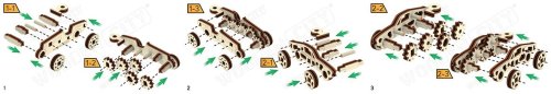 funkční mechanický model skládání bez použití lepidla nebo nářadí kvalitní zpracování z přírodního materiálu propracované detaily obrázkový návod