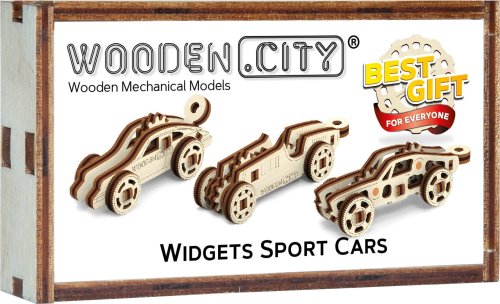 Téměř každý muž touží po sportovním autě a ženám se líbí muži s parádním sportovním vozem. Tato sada obsahuje rovnou tři sporťáky - v mini verzi. Nebylo přesně stanoveno jak velký sporťák to má být... Dřevěná mechanická stavebnice sady Drobností - Widgets obsahuje 3 mini modely sportovních vozů, které si můžete jen tak vystavit, nosit jako přívěšek nebo darovat pro radost. Díky jedinečnému designu a detailům modelů bude vaše skládání plné zábavy. 3D puzzle WOODEN CITY Widgets Sport Cars je drobností, která potěší každého milovníka vozidel. Orientační doba na složení: 3 x 10 min Dřevěné 3D puzzle WOODEN CITY jsou detailně propracované funkční mechanické modely, které se skládají bez lepidla nebo nářadí. Jsou vyrobeny z ekologických dřevěných materiálů - kvalitní březové překližky. S mechanickými dřevěnými puzzle WOODEN CITY zažijete hodiny zábavy při skládání a poznáte převody, gumičkové motory, ozubená kolečka a další součástky z bezprostřední blízkosti.