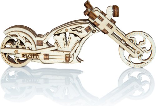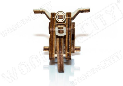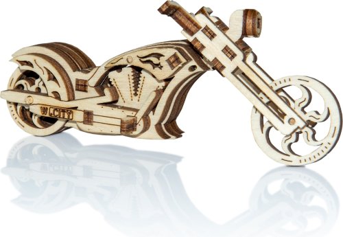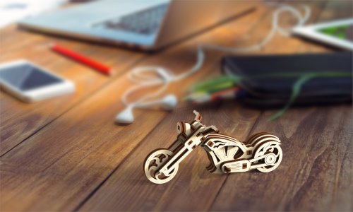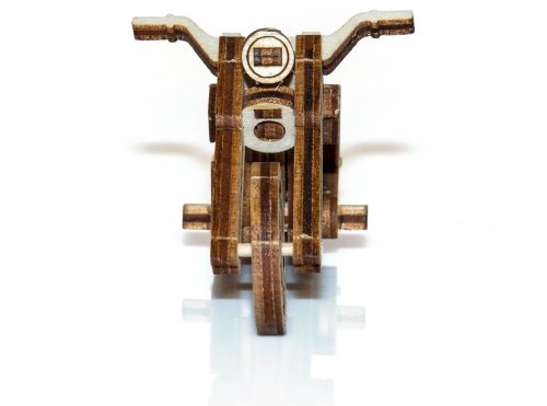 Dřevěná mechanická stavebnice sady Drobností - Widgets obsahuje mini model motorky , který si můžete jen tak vystavit nebo darovat pro radost.