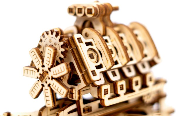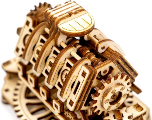 Dřevěné mechanické 3D puzzle spalovacího motoru ve tvaru V, který se používá v závodních vozech Formule 1 . Krása pohybu je v každém detailu tohoto otevřeného mechanismu! Rytmická hudba pístů! Jsme si jisti, že pístový spalovací motor pro vás bude mistrovským dílem technického umění. V8 ENGINE je realistický mini model automobilového motoru. V letech 2006 až 2014 začaly motory V8 používat také formule 1, které zmenšily své rozměry. Během sestavování ve vás náš model motoru zanechá pocit, že si vymýšlíte vlastní motor závodního vozu, který bude jezdit na světových soutěžích. Pohyblivé díly modelu: - 8 válců, - písty, - kliková hřídel, - ventilátor. 3D puzzle WOODEN CITY V8 Engine je skvělým dárkem pro automobilové nadšence, fanoušky automobilových závodů, techniky a mechaniky. Obtížnost: 3 z 5 (dle rozdělení Wooden City) Orientační doba na složení: 3,5 hodiny Dřevěné 3D puzzle WOODEN CITY jsou detailně propracované funkční mechanické modely, které se skládají bez lepidla nebo nářadí. Jsou vyrobeny z ekologických dřevěných materiálů - kvalitní březové překližky. S mechanickými dřevěnými puzzle WOODEN CITY zažijete hodiny zábavy při skládání a poznáte převody, gumičkové motory, ozubená kolečka a další součástky z bezprostřední blízkosti.