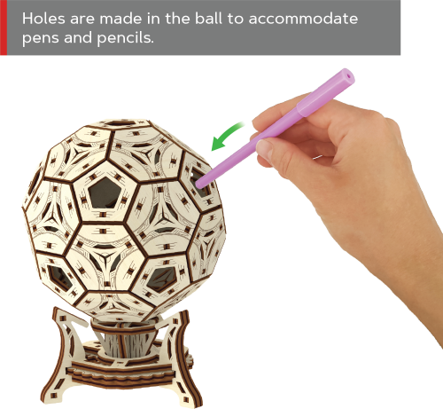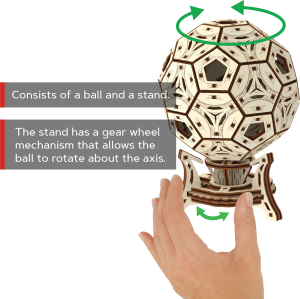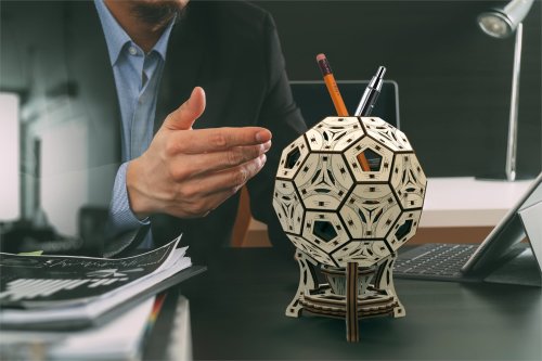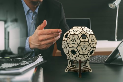 Proč je být fotbalistou tak cool? Především jste vždycky ve skvělé formě, sport je váš život, jste slavní, máte svalnaté nohy a spoustu obdivovatelek. Zní to skvěle? Tento multifunkční 3D organizér je stvořený právě pro vás - úžasný fotbalový pohár. - lze použít pro kancelářské věci - roztočte stojan a sledujte, jak se míč otáčí - vyjměte míč ze stojanu a hrajte si jen tak 3D puzzle WOODEN CITY Footbal Cup je skvělým dárkem pro všechny fotbalové nadšence a fanoušky. Obtížnost: 3 z 5 (dle rozdělení Wooden City) Orientační doba na složení: 2 hodiny Dřevěné 3D puzzle WOODEN CITY jsou detailně propracované funkční mechanické modely, které se skládají bez lepidla nebo nářadí. Jsou vyrobeny z ekologických dřevěných materiálů - kvalitní březové překližky. S mechanickými dřevěnými puzzle WOODEN CITY zažijete hodiny zábavy při skládání a poznáte převody, gumičkové motory, ozubená kolečka a další součástky z bezprostřední blízkosti.