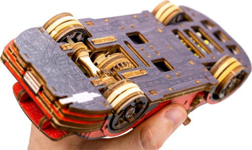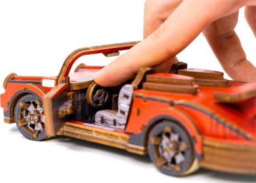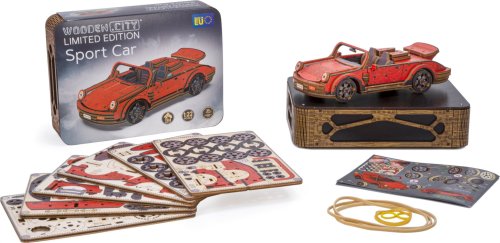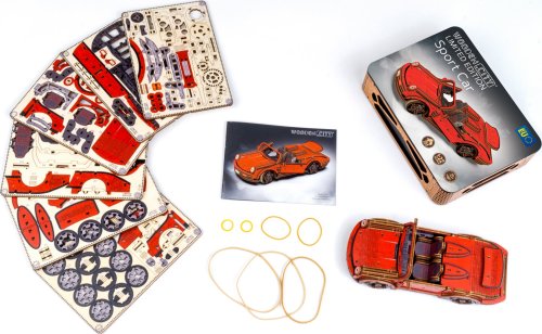 Dřevěná mechanická stavebnice nejúžasnějšího sportovního auta na vás čeká! Díky jedinečnému designu a překvapivým detailům tohoto modelu bude vaše trávení času plné zábavy a skvělých emocí. Můžete používat řízení předních kol. Auto se setrvačným mechanismem může ujet až 1 metr. Vlastnosti sportovního auta: - motor poháněný gumičkovým řemenem, - otočná přední kola, - výrazné barevné prvky díky vysoce přesnému UV tisku, - dřevěná krabička slouží jako podstavec, - sběratelská edice. 3D puzzle WOODEN CITY Sport Car bude nejlepším dárkem pro každého milovníka sportovních vozů. Obtížnost: 3 z 5 (dle rozdělení Wooden City) Orientační doba na složení: 3 hodiny Měřítko: 1:22 Dřevěné 3D puzzle WOODEN CITY jsou detailně propracované funkční mechanické modely, které se skládají bez lepidla nebo nářadí. Jsou vyrobeny z ekologických dřevěných materiálů - kvalitní březové překližky. S mechanickými dřevěnými puzzle WOODEN CITY zažijete hodiny zábavy při skládání a poznáte převody, gumičkové motory, ozubená kolečka a další součástky z bezprostřední blízkosti.