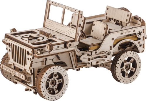 Naše 3D puzzle 4×4 slavného amerického terénního vozidla . Tento model je po sestavení složitým mechanismem s jemnými detaily. Je to předchůdce dnešních SUV, vozidlo s mužným charakterem! Během druhé světové války zahájila americká automobilka Willys-Overland Motors výrobu svého legendárního armádního džípu Willys MB. V roce 1941 byla zahájena sériová výroba tohoto vojenského užitkového vozidla, které bylo okamžitě ve velkém množství nasazeno spojeneckými silami. Do historie se zapsaly jako spolehlivé, obratné a funkční. Byl to skutečně "technický průlom" a skutečný "válečný motor". Dnes jsou džíp i jeho nástupce, SUV, drahá terénní vozidla určená pro odolné jedince. Překonávají překážky, prach, cesty a nebezpečí. Model s vlastnostmi skutečného vozidla: