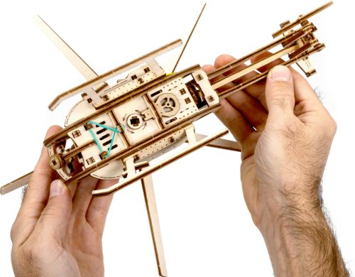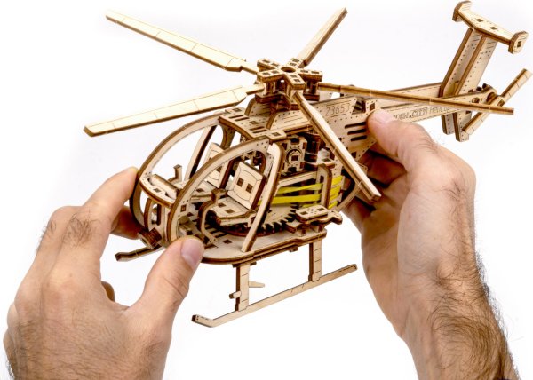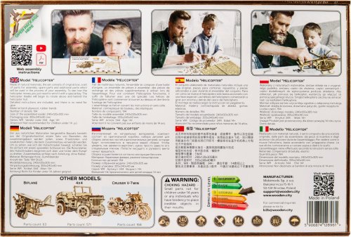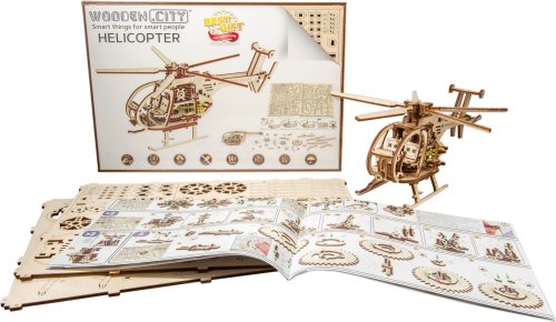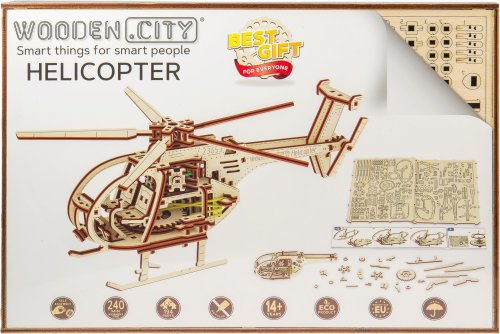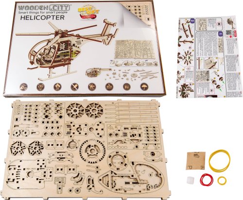 Dřevěná mechanická stavebnice vojenského vrtulníku na vás čeká! Díky jedinečnému designu a překvapivým detailům tohoto modelu bude vaše trávení času plné zábavy a skvělých emocí. Vlastnosti modelu: - lopatky vrtulníku se otáčí - natahování speciálním klíčem - model je kopií skutečného vrtulníku 3D puzzle WOODEN CITY Helicopter bude nejlepším dárkem pro každého milovníka letectví. Obtížnost: střední 3 z 5 Orientační doba na složení: 4 hodiny Měřítko: 1:30 Dřevěné 3D puzzle WOODEN CITY jsou detailně propracované funkční mechanické modely, které se skládají bez lepidla nebo nářadí. Jsou vyrobeny z ekologických dřevěných materiálů - kvalitní březové překližky. S mechanickými dřevěnými puzzle WOODEN CITY zažijete hodiny zábavy při skládání a poznáte převody, gumičkové motory, ozubená kolečka a další součástky z bezprostřední blízkosti.