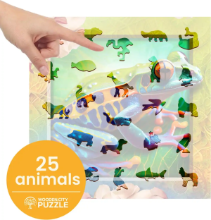 Laserem vyřezávané dřevěné puzzle WOODEN CITY se svými speciálně tvarovanými dílky je neskutečně zábavné. Část dílků je vyrobena ve tvaru zvířat , jejichž výsledný efekt umocňují laserem zvýrazněné detaily. Tyto dílky mohou samostatně stát jako drobné figurky. Skládání puzzle s různotvarými dílky je obtížnější a představuje větší výzvu, než skládání klasického puzzle. Značka WOODEN CITY kromě unikátního konceptu puzzle nezapomíná na ekologii, u těchto výrobku proto nenaleznete žádné plastové obaly .