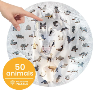 Laserem vyřezávané dřevěné puzzle WOODEN CITY se svými speciálně tvarovanými dílky je neskutečně zábavné. Část dílků je vyrobena ve tvaru zvířat , jejichž výsledný efekt umocňují laserem zvýrazněné detaily. Tyto dílky mohou samostatně stát jako drobné figurky. Skládání puzzle s různotvarými dílky je obtížnější a představuje větší výzvu, než skládání klasického puzzle. Značka WOODEN CITY kromě unikátního konceptu puzzle nezapomíná na ekologii, u těchto výrobku proto nenaleznete žádné plastové obaly .