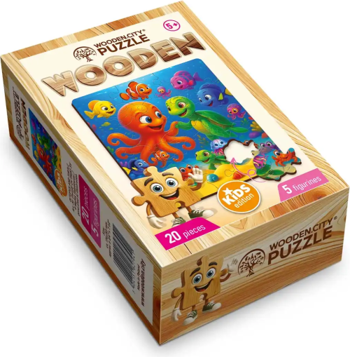 Dřevěné puzzle WOODEN CITY zve všechny děti k prozkoumání fascinujícího života pod mořskou hladinou.