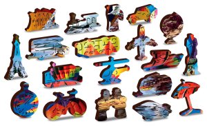 s unikátně tvarovanými dílky představující známé stavby, předměty nebo zvířata podle tématu motivu vyšší obtížnost při menším počtu dílků - skládání puzzle s různotvarými dílky je náročnější oboustranné puzzle 2v1 - z jedné strany je obrázek, z druhé opakující se vzor pro skládání podle tvaru hladké hrany bez třísek díky preciznímu laserovému zpracování vyrobeno z pevné dřevovláknité HDF desky o síle 3-4mm uvnitř balení je samostatná předloha na skládání EKO Friendly 100% bez plastových obalů - puzzle je v papírovém sáčku uvnitř papírové krabičky vhodný dárek pro jakoukoliv příležitost