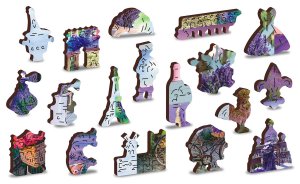 s unikátně tvarovanými dílky představující známé stavby, předměty nebo zvířata podle tématu motivu vyšší obtížnost při menším počtu dílků - skládání puzzle s různotvarými dílky je náročnější oboustranné puzzle 2v1 - z jedné strany je obrázek, z druhé opakující se vzor pro skládání podle tvaru hladké hrany bez třísek díky preciznímu laserovému zpracování vyrobeno z pevné dřevovláknité HDF desky o síle 3-4mm uvnitř balení je samostatná předloha na skládání EKO Friendly 100% bez plastových obalů - puzzle je v papírovém sáčku uvnitř papírové krabičky vhodný dárek pro jakoukoliv příležitost