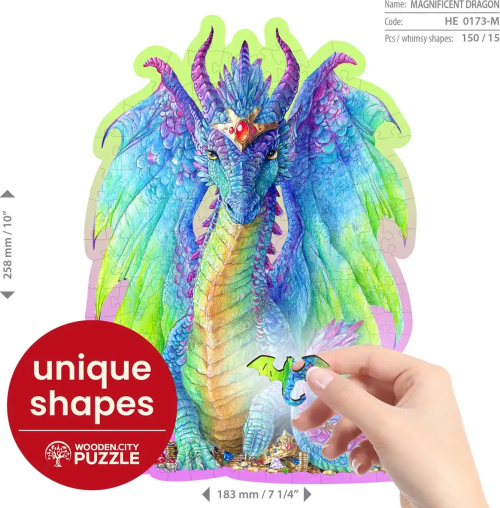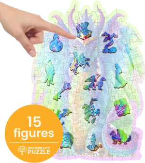 Laserem vyřezávané dřevěné puzzle WOODEN CITY se svými speciálně tvarovanými dílky je neskutečně zábavné. Část dílků je vyrobena ve tvaru zvířat , jejichž výsledný efekt umocňují laserem zvýrazněné detaily. Tyto dílky mohou samostatně stát jako drobné figurky. Skládání puzzle s různotvarými dílky je obtížnější a představuje větší výzvu, než skládání klasického puzzle. Značka WOODEN CITY kromě unikátního konceptu puzzle nezapomíná na ekologii, u těchto výrobku proto nenaleznete žádné plastové obaly .