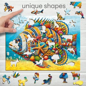 Laserem vyřezávané dřevěné puzzle WOODEN CITY se svými speciálně tvarovanými dílky je neskutečně zábavné. Část dílků je vyrobena ve tvaru zvířat , jejichž výsledný efekt umocňují laserem zvýrazněné detaily. Tyto dílky mohou samostatně stát jako drobné figurky. Skládání puzzle s různotvarými dílky je obtížnější a představuje větší výzvu, než skládání klasického puzzle. Značka WOODEN CITY kromě unikátního konceptu puzzle nezapomíná na ekologii, u těchto výrobku proto nenaleznete žádné plastové obaly .
