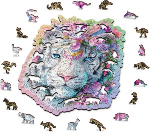 s unikátně tvarovanými dílky ve tvaru zvířat vyšší obtížnost při menším počtu dílků - skládání puzzle s různotvarými dílky je náročnější hladké hrany bez třísek díky preciznímu laserovému zpracování vyrobeno z pevné dřevovláknité HDF desky o síle 3-4mm uvnitř balení je samostatná předloha na skládání EKO Friendly 100% bez plastových obalů - puzzle je v papírovém sáčku uvnitř papírové krabičky vhodný dárek pro jakoukoliv příležitost
