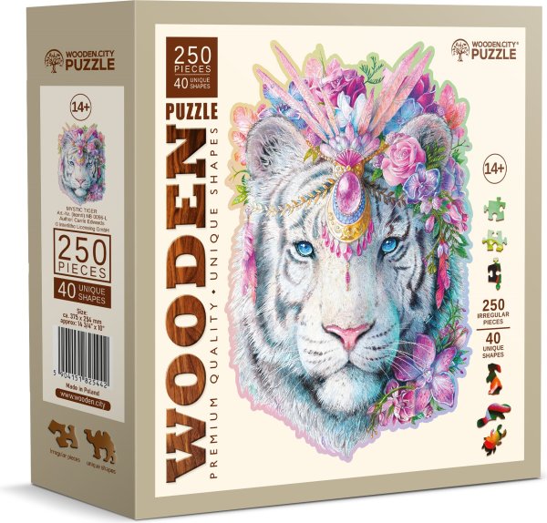 Laserem vyřezávané dřevěné puzzle WOODEN CITY se svými speciálně tvarovanými dílky je neskutečně zábavné. Část dílků je vyrobena ve tvaru zvířat , jejichž výsledný efekt umocňují laserem zvýrazněné detaily. Tyto dílky mohou samostatně stát jako drobné figurky. Skládání puzzle s různotvarými dílky je obtížnější a představuje větší výzvu, než skládání klasického puzzle. Značka WOODEN CITY kromě unikátního konceptu puzzle nezapomíná na ekologii, u těchto výrobku proto nenaleznete žádné plastové obaly .