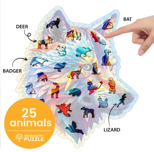Laserem vyřezávané dřevěné puzzle WOODEN CITY se svými speciálně tvarovanými dílky je neskutečně zábavné. Část dílků je vyrobena ve tvaru zvířat , jejichž výsledný efekt umocňují laserem zvýrazněné detaily. Tyto dílky mohou samostatně stát jako drobné figurky. Skládání puzzle s různotvarými dílky je obtížnější a představuje větší výzvu, než skládání klasického puzzle. Značka WOODEN CITY kromě unikátního konceptu puzzle nezapomíná na ekologii, u těchto výrobku proto nenaleznete žádné plastové obaly .
