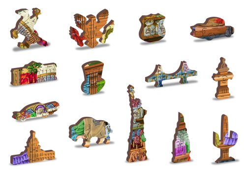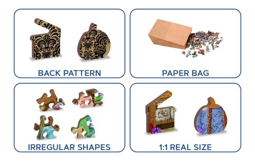 s unikátně tvarovanými dílky představující známé stavby, předměty nebo zvířata podle tématu motivu vyšší obtížnost při menším počtu dílků - skládání puzzle s různotvarými dílky je náročnější oboustranné puzzle 2v1 - z jedné strany je obrázek, z druhé opakující se vzor pro skládání podle tvaru hladké hrany bez třísek díky preciznímu laserovému zpracování vyrobeno z pevné dřevovláknité HDF desky o síle 3-4mm uvnitř balení je samostatná předloha na skládání EKO Friendly 100% bez plastových obalů - puzzle je v papírovém sáčku uvnitř papírové krabičky vhodný dárek pro jakoukoliv příležitost
