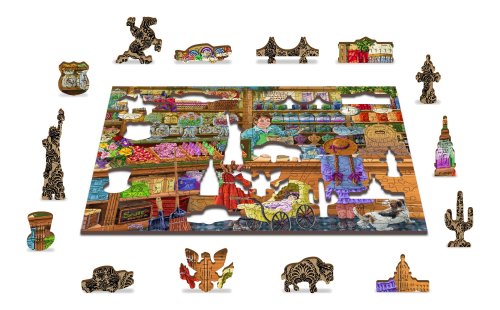 Laserem vyřezávané dřevěné puzzle WOODEN CITY se svými speciálně tvarovanými dílky je neskutečně zábavné. Část dílků je vyrobena ve tvaru zvířat, staveb nebo předmětů , jejichž výsledný efekt umocňují laserem zvýrazněné detaily. Tyto dílky mohou samostatně stát jako drobné figurky. Skládání puzzle s různotvarými dílky je obtížnější a představuje větší výzvu, než skládání klasického puzzle. Puzzle je navíc oboustranné , skládat můžete jak podle obrázku (lícová strana), tak podle tvaru (rubová strana se vzorem). Značka WOODEN CITY kromě unikátního konceptu puzzle nezapomíná na ekologii, u těchto výrobku proto nenaleznete žádné plastové obaly .