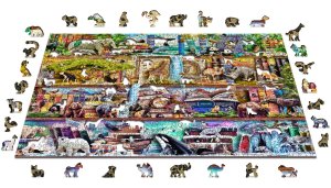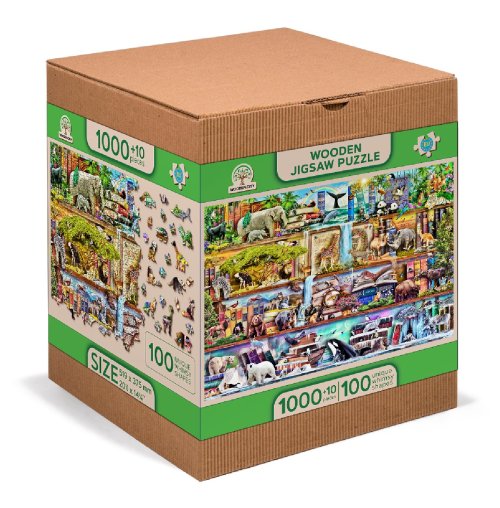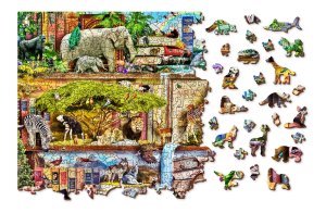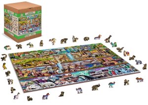 Laserem vyřezávané dřevěné puzzle WOODEN CITY se svými speciálně tvarovanými dílky je neskutečně zábavné. Část dílků je vyrobena ve tvaru zvířat, staveb nebo předmětů , jejichž výsledný efekt umocňují laserem zvýrazněné detaily. Tyto dílky mohou samostatně stát jako drobné figurky. Skládání puzzle s různotvarými dílky je obtížnější a představuje větší výzvu, než skládání klasického puzzle. Puzzle je navíc oboustranné , skládat můžete jak podle obrázku (lícová strana), tak podle tvaru (rubová strana se vzorem). Značka WOODEN CITY kromě unikátního konceptu puzzle nezapomíná na ekologii, u těchto výrobku proto nenaleznete žádné plastové obaly .