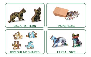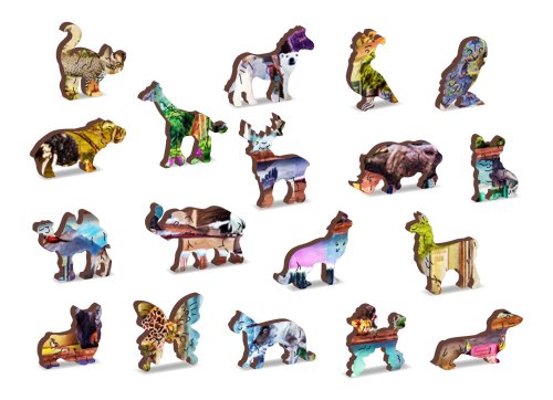 s unikátně tvarovanými dílky představující známé stavby, předměty nebo zvířata podle tématu motivu vyšší obtížnost při menším počtu dílků - skládání puzzle s různotvarými dílky je náročnější oboustranné puzzle 2v1 - z jedné strany je obrázek, z druhé opakující se vzor pro skládání podle tvaru hladké hrany bez třísek díky preciznímu laserovému zpracování vyrobeno z pevné dřevovláknité HDF desky o síle 3-4mm uvnitř balení je samostatná předloha na skládání EKO Friendly 100% bez plastových obalů - puzzle je v papírovém sáčku uvnitř papírové krabičky vhodný dárek pro jakoukoliv příležitost