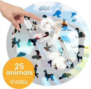 Laserem vyřezávané dřevěné puzzle WOODEN CITY se svými speciálně tvarovanými dílky je neskutečně zábavné. Část dílků je vyrobena ve tvaru zvířat , jejichž výsledný efekt umocňují laserem zvýrazněné detaily. Tyto dílky mohou samostatně stát jako drobné figurky. Skládání puzzle s různotvarými dílky je obtížnější a představuje větší výzvu, než skládání klasického puzzle. Značka WOODEN CITY kromě unikátního konceptu puzzle nezapomíná na ekologii, u těchto výrobku proto nenaleznete žádné plastové obaly .