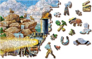 Laserem vyřezávané dřevěné puzzle WOODEN CITY se svými speciálně tvarovanými dílky je neskutečně zábavné. Část dílků je vyrobena ve tvaru zvířat, staveb nebo předmětů , jejichž výsledný efekt umocňují laserem zvýrazněné detaily. Tyto dílky mohou samostatně stát jako drobné figurky. Skládání puzzle s různotvarými dílky je obtížnější a představuje větší výzvu, než skládání klasického puzzle. Puzzle je navíc oboustranné , skládat můžete jak podle obrázku (lícová strana), tak podle tvaru (rubová strana se vzorem). Značka WOODEN CITY kromě unikátního konceptu puzzle nezapomíná na ekologii, u těchto výrobku proto nenaleznete žádné plastové obaly .