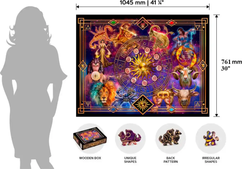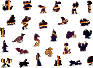 s unikátně tvarovanými dílky představující známé stavby, předměty nebo zvířata podle tématu motivu vyšší obtížnost při menším počtu dílků - skládání puzzle s různotvarými dílky je náročnější oboustranné puzzle 2v1 - z jedné strany je obrázek, z druhé opakující se vzor pro skládání podle tvaru hladké hrany bez třísek díky preciznímu laserovému zpracování vyrobeno z pevné dřevovláknité HDF desky o síle 3-4mm uvnitř balení je samostatná předloha na skládání vhodný dárek pro jakoukoliv příležitost