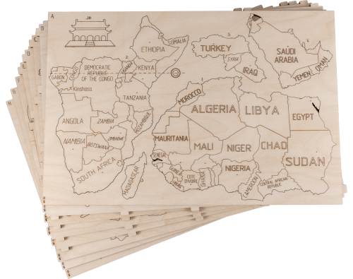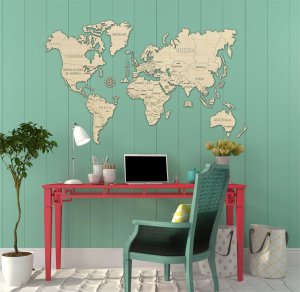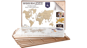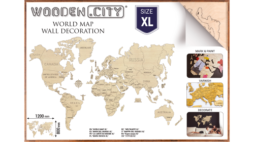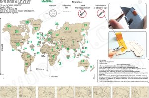 Dřevěné "puzzle" zobrazující mapu celého světa je určeno především jako dekorační prvek nebo stylový dárek nejen pro cestovatele. Nástěnná mapa se stane světem vzpomínek, zážitků a dobrodružství. Pomocí oboustranné lepicí pásky ji snadno umístíte doma nebo třeba v kanceláři. Originální dřevěná mapa světa je vyřezaná laserem z kvalitní břízové překližky. Navštívená místa můžete třeba vybarvit nebo do dřeva zapíchnout špendlík s vlaječkou.