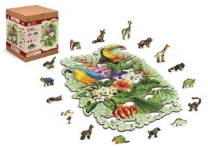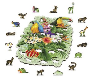 Laserem vyřezávané dřevěné puzzle WOODEN CITY se svými speciálně tvarovanými dílky je neskutečně zábavné. Část dílků je vyrobena ve tvaru zvířat , jejichž výsledný efekt umocňují laserem zvýrazněné detaily. Tyto dílky mohou samostatně stát jako drobné figurky. Skládání puzzle s různotvarými dílky je obtížnější a představuje větší výzvu, než skládání klasického puzzle. Značka WOODEN CITY kromě unikátního konceptu puzzle nezapomíná na ekologii, u těchto výrobku proto nenaleznete žádné plastové obaly .
