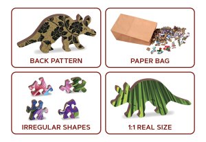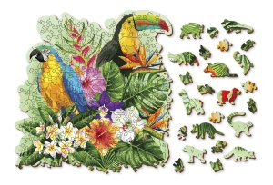 s unikátně tvarovanými dílky ve tvaru zvířat vyšší obtížnost při menším počtu dílků - skládání puzzle s různotvarými dílky je náročnější hladké hrany bez třísek díky preciznímu laserovému zpracování vyrobeno z pevné dřevovláknité HDF desky o síle 3-4mm uvnitř balení je samostatná předloha na skládání EKO Friendly 100% bez plastových obalů - puzzle je v papírovém sáčku uvnitř papírové krabičky vhodný dárek pro jakoukoliv příležitost