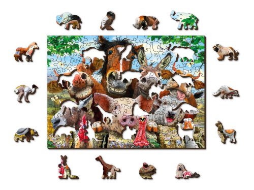 Laserem vyřezávané dřevěné puzzle WOODEN CITY se svými speciálně tvarovanými dílky je neskutečně zábavné. Část dílků je vyrobena ve tvaru zvířat, staveb nebo předmětů , jejichž výsledný efekt umocňují laserem zvýrazněné detaily. Tyto dílky mohou samostatně stát jako drobné figurky. Skládání puzzle s různotvarými dílky je obtížnější a představuje větší výzvu, než skládání klasického puzzle. Puzzle je navíc oboustranné , skládat můžete jak podle obrázku (lícová strana), tak podle tvaru (rubová strana se vzorem). Značka WOODEN CITY kromě unikátního konceptu puzzle nezapomíná na ekologii, u těchto výrobku proto nenaleznete žádné plastové obaly .