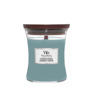 Svěží tóny jehličnatých stromů s dotekem mrazivých aldehydů kontrastují s hřejivým kořením, čistými tóny a borovicí. Střední svíčka Evergreen Cashmere přinese do vašeho domova uklidňující zvuk praskání dřeva a nádhernou vůni. Svíčky Woodwick mají speciální dřevěné knoty, které produkují zvuk hořícího dřeva v krbu a zajišťují správné hoření svíčky.