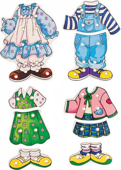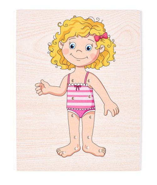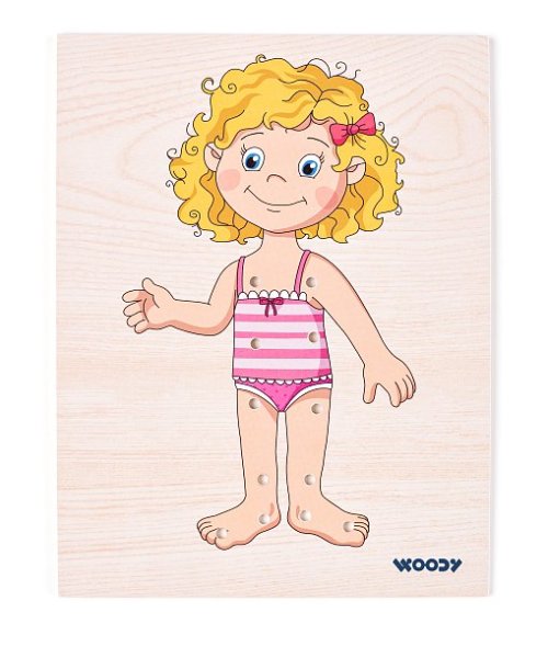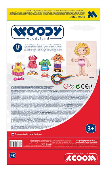 Děti dle vlastní fantazie oblékají postavičku holčičky K dispozici mají několik variant oblečení Holčička namalovaná na vysouvacím víku krabičky má na těle otvory, které umožňují přichycení oblečků tkaničkami