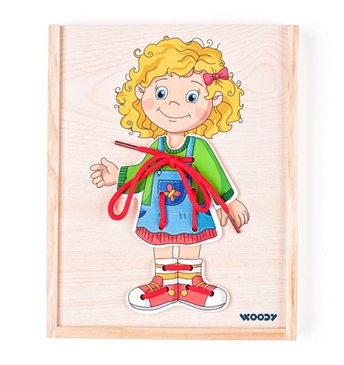 Provlékání provázku WOODY Šněrovací šatní skříň Holčička