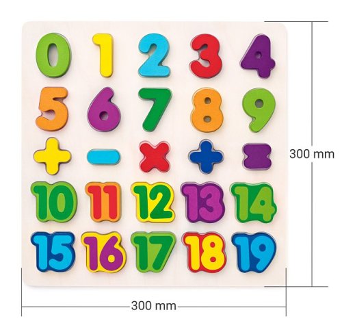 Dítě vkládá číslice do správných výseků Může skládat a procvičovat i jednoduché matematické příklady Vhodné pro předškoláky
