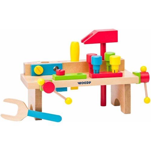 Pracovní ponk je hračka, která rozvíjí jemnou motoriku Dítě si může vyzkoušet práci se šrouby a s matkami, zatloukání kolíků kladívkem, práci se svěrákem, atd.