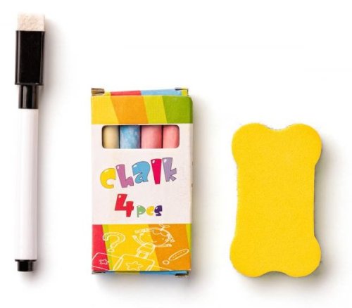 Obsahuje velké množství magnetických písmen, čísel i znaků Pro nácvik skládání slov i jednoduchých matematických příkladů Barevné křídy Fix Houbička