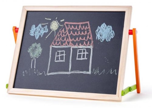 Oboustranná stolní tabule Z jedné strany černá plocha pro psaní křídami Z druhé bílá magnetická plocha pro psaní fixou