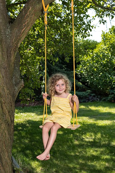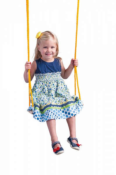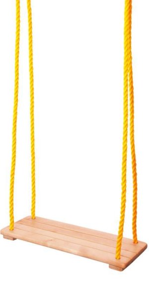 Klasická jednoduchá dřevěná houpačka na zavěšení-prkénko Houpačka bez podpěrek umožňuje větším dětem více pohybu, volnosti a způsobů houpání