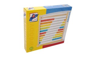 Dřevěné počítadlo v přírodním rámu Na 10 tyčkách je navlečeno celkem 100 ks dřevěných kuliček, které jsou roztříděné po deseti Hračka je výbornou pomůckou pro děti, které se začínají učit počítat
